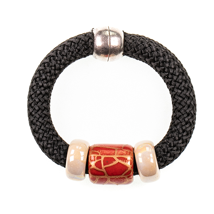 Délka cca 20 cm. Hedvábí s malovanou a glazovanou keramikou Zapínání na magnet.