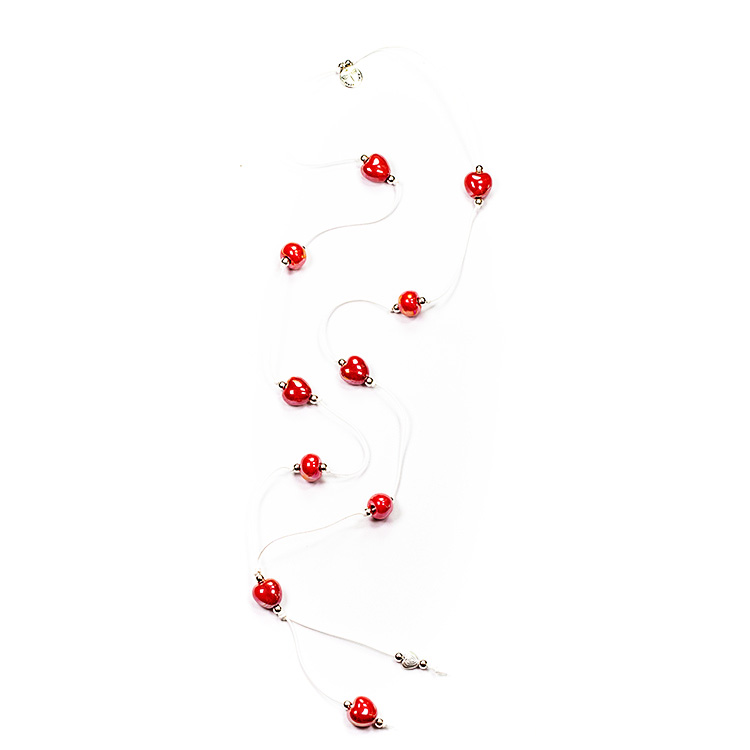 Bavlna propletená s malovanou a glazovanou keramikou s chromatickými efekty a komponenty v zamaku. Celková délka od šíje dolů 55cm.