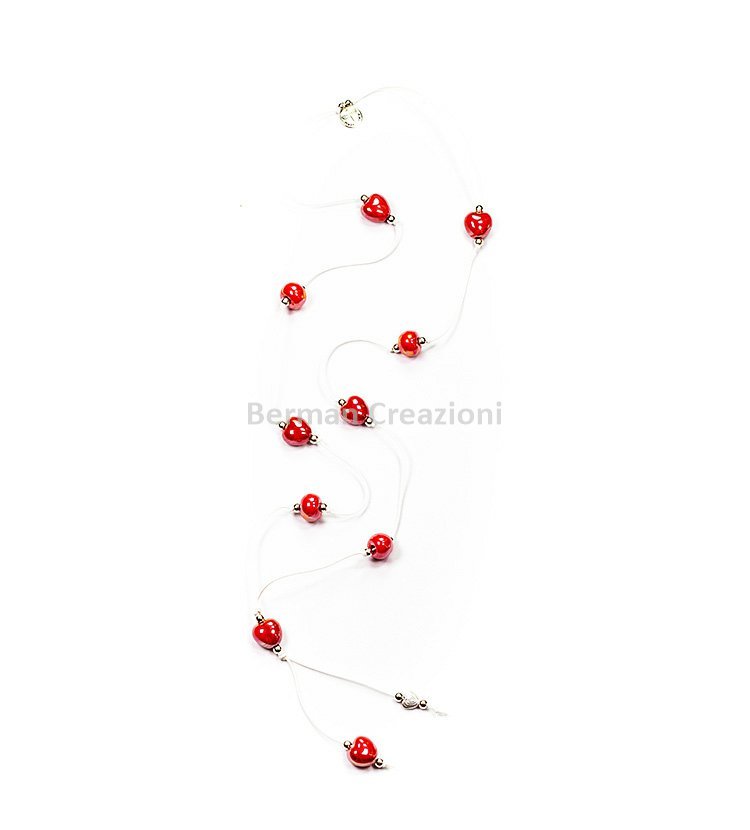Náramek červený, srdíčka, keramika