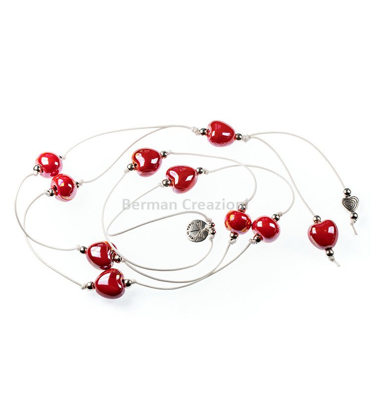 Hra barev a lesk glazované keramiky dávají ručně vyráběným šperkům Berman Creazioni unikátní charakter. Kovové motivy jsou vyráběny ze ZAMAKU, slitiny vzácných kovů se stříbrnou povrchovou úpravou (Ag1000), neobsahující nikl. Kroužky a háčky náušnic jsou vyrobeny ze stříbra (Ag925). Velikosti korálků (průměr): S -10mm, M - 14mm, L -17mm.